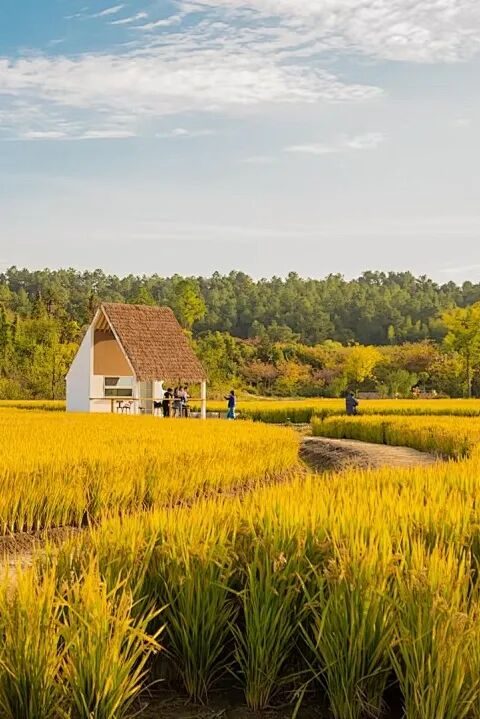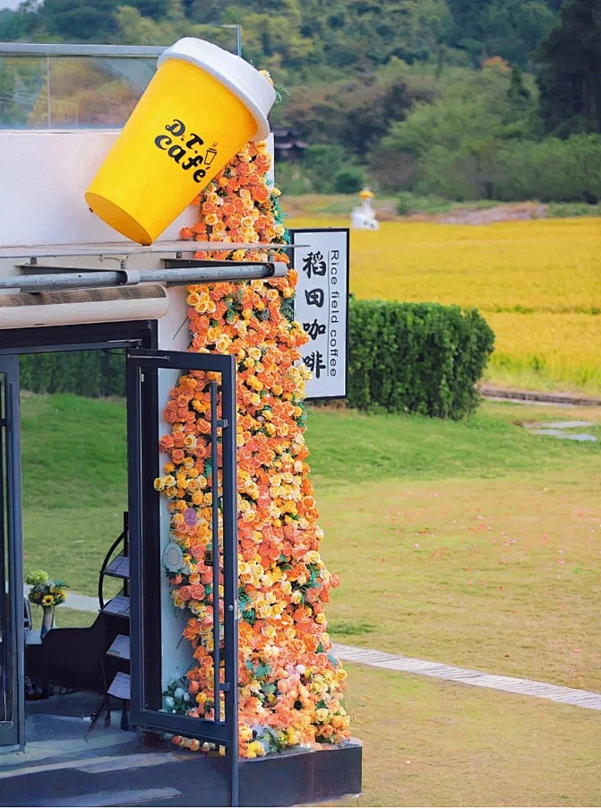 稻田边开了一家十分应景的咖啡店