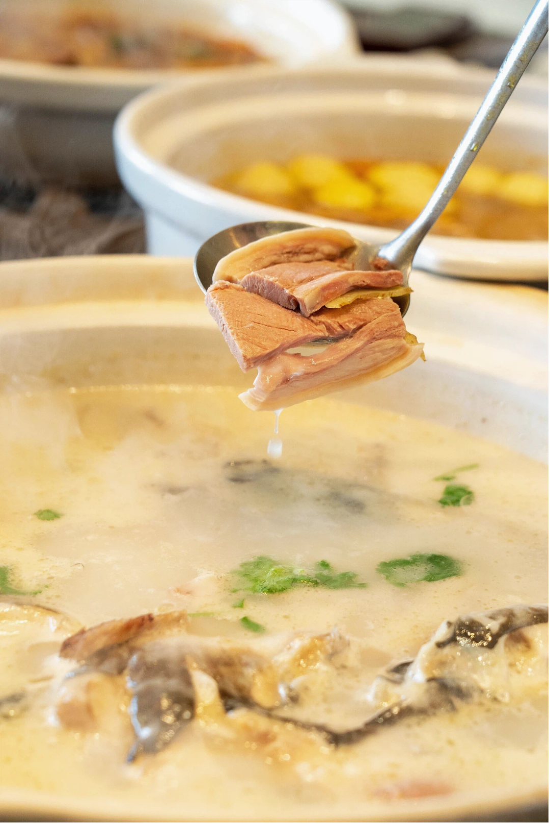 本地山羊肉鲜嫩无膻,搭配肉质细嫩的鮰鱼,加入黄精等药膳慢炖,汤色奶白醇厚,鱼肉吸饱肉香,羊肉裹挟着鱼鲜,暖身又养生。