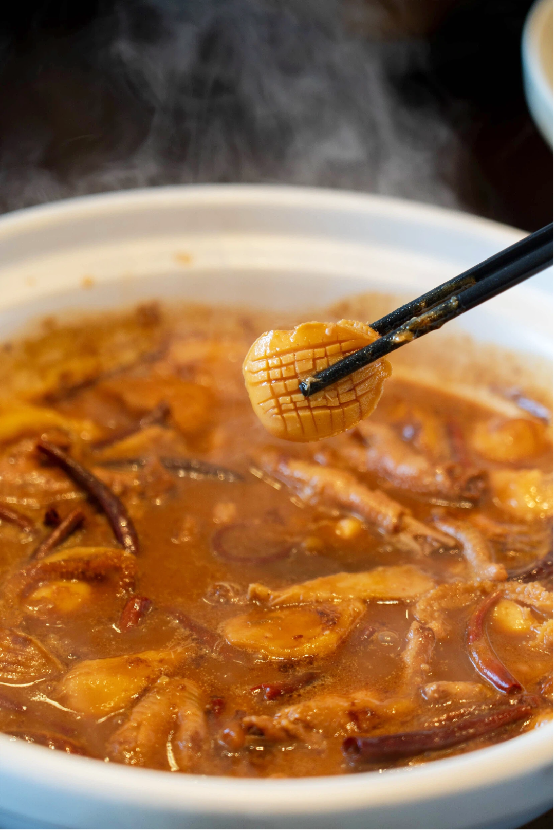 本地建昌红香芋软糯香甜,凤爪酥烂脱骨,再与弹牙的鲜鲍鱼同焖。芋头吸饱了海鲜与肉汁的精华,口感层次极为丰富。