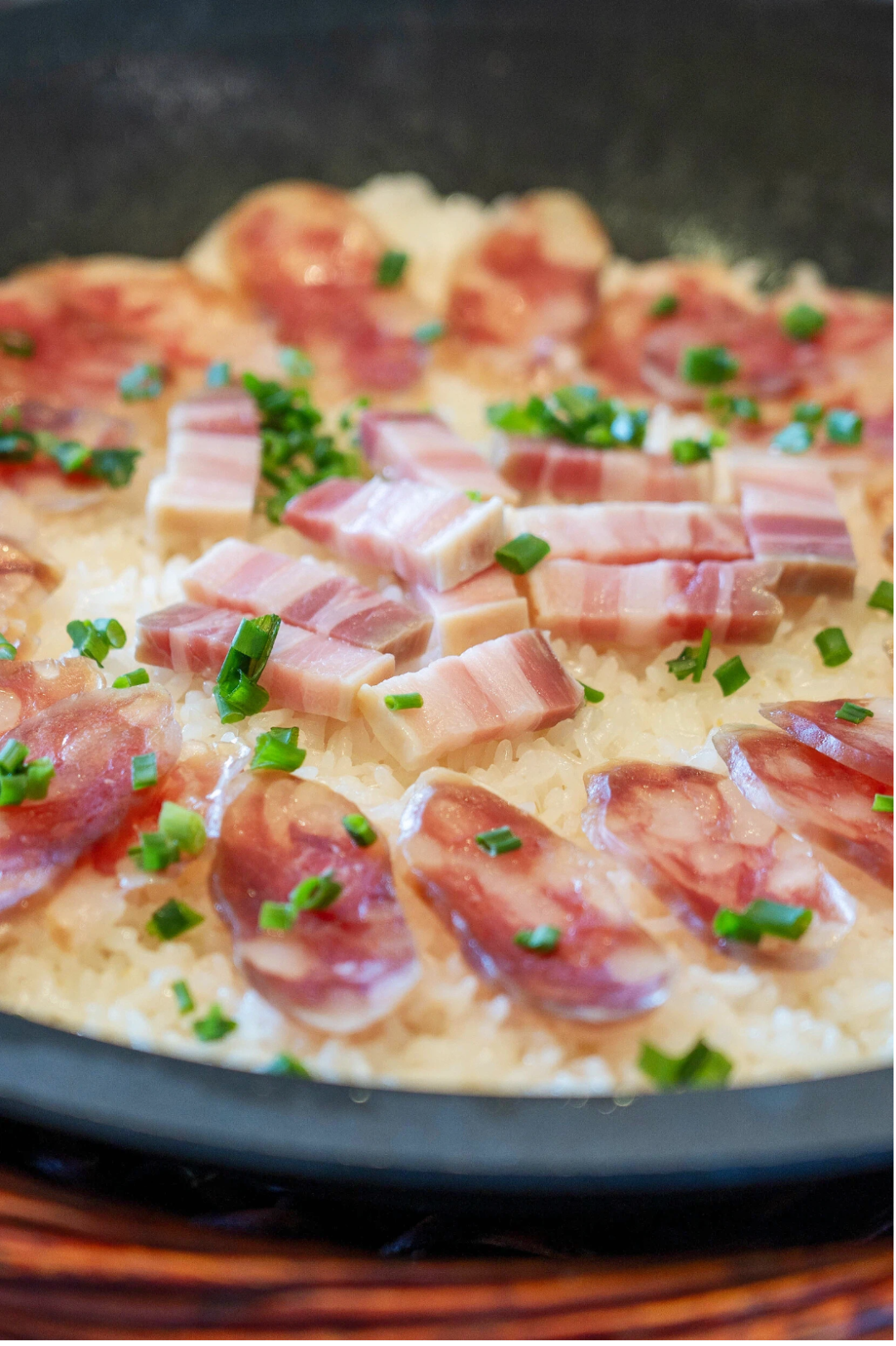 选用金坛指前标米,底部煎出金黄脆香的锅巴,铺满手工腌制的咸肉和腊肠,米香混合腊香,脆嫩相间,一口下去超满足~
