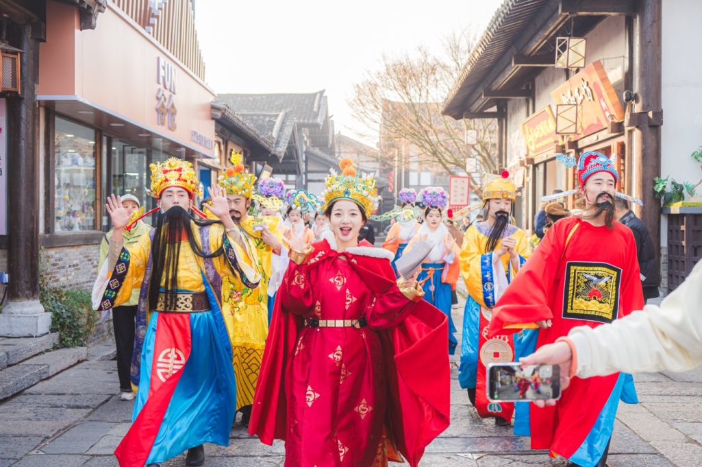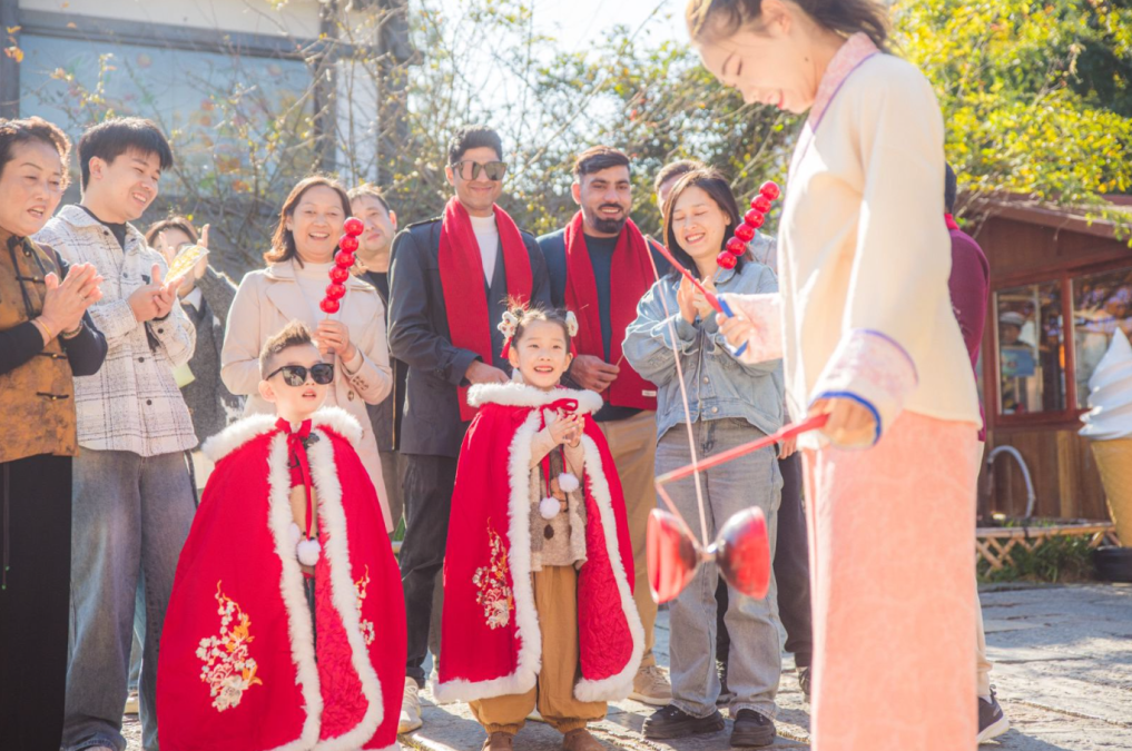 看舞狮杂耍送吉祥。