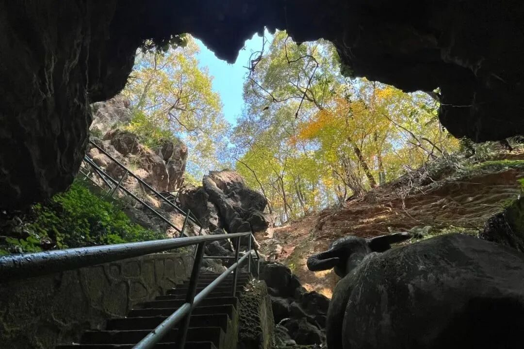 秋天最适合爬山登高了!从盐湖城驾车出发,约12分钟(6.1km)便到茅山金牛洞。这里没有陡峭的山路,台阶平缓好走,沿途都是苍翠的树木,阳光透过叶隙洒下光影,整个山林超灵动,而且走起来一点都不费劲。
