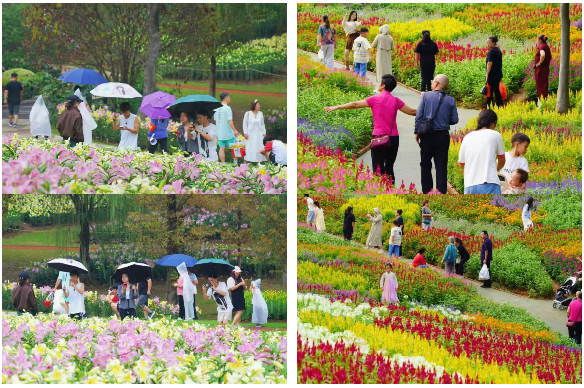 自带浪漫气息的秋日花海成为游客打卡圣地。纯净的百合花海、金灿灿的向日葵花海、如调色盘般的七彩花田、以及粉色云雾般的粉黛花海,共同构成绝美秋日画卷。