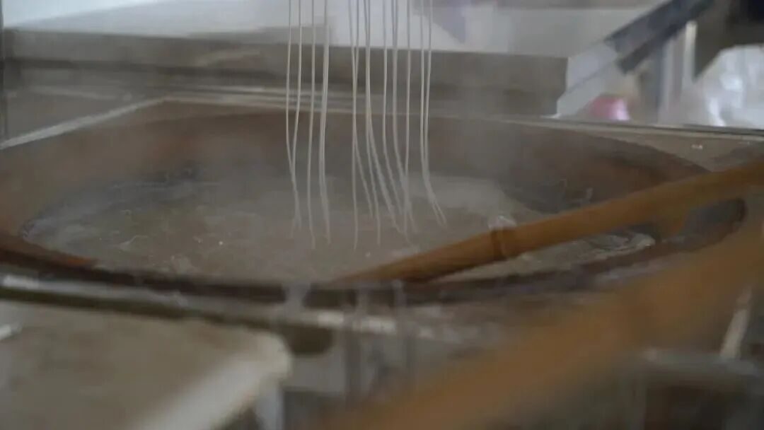 粉丝如银丝簌簌落入沸水,舒展翻滚