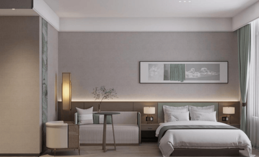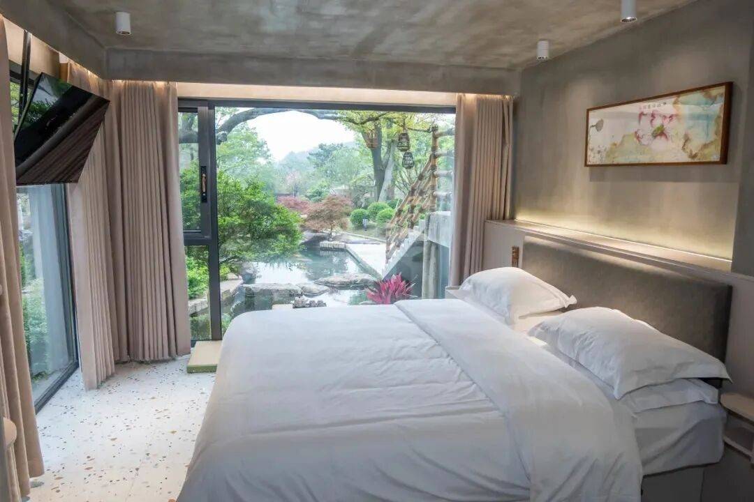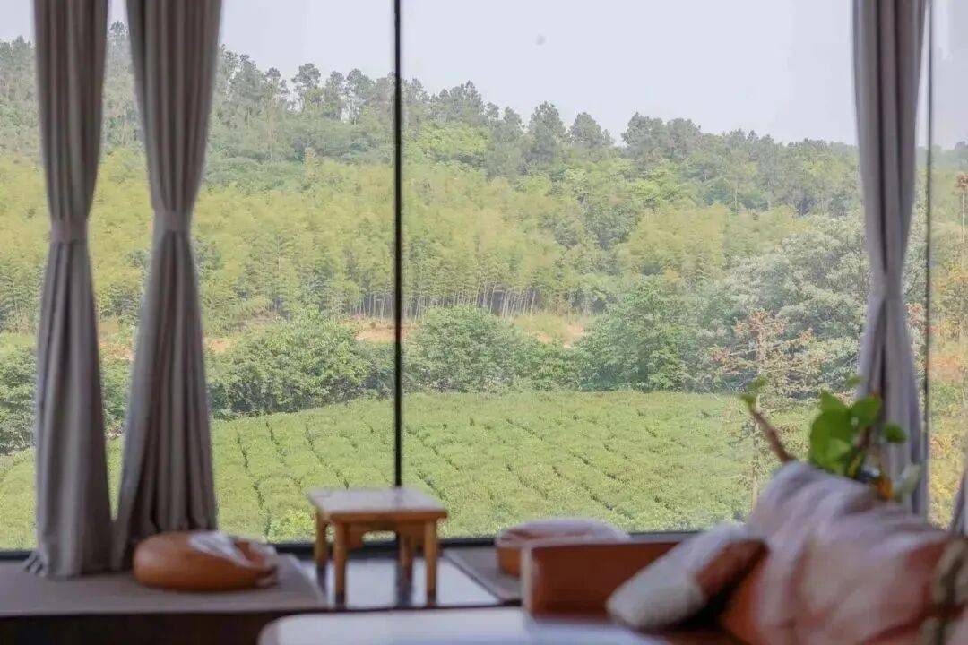 推窗即欣赏壮丽的山峦和清澈的仙鹤湖,