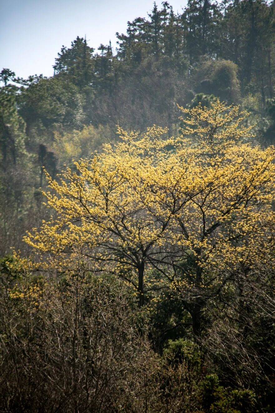 檫木已率先在枝头开出一簇簇金黄的花儿,