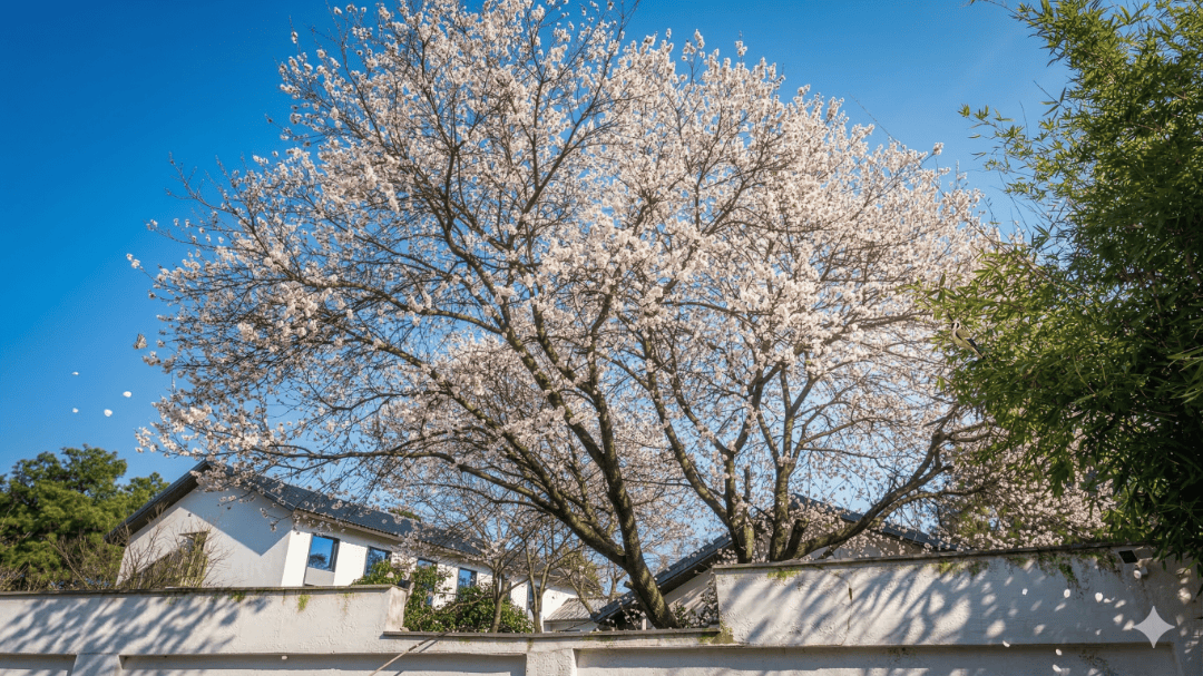 满树粉白繁花层层叠叠,