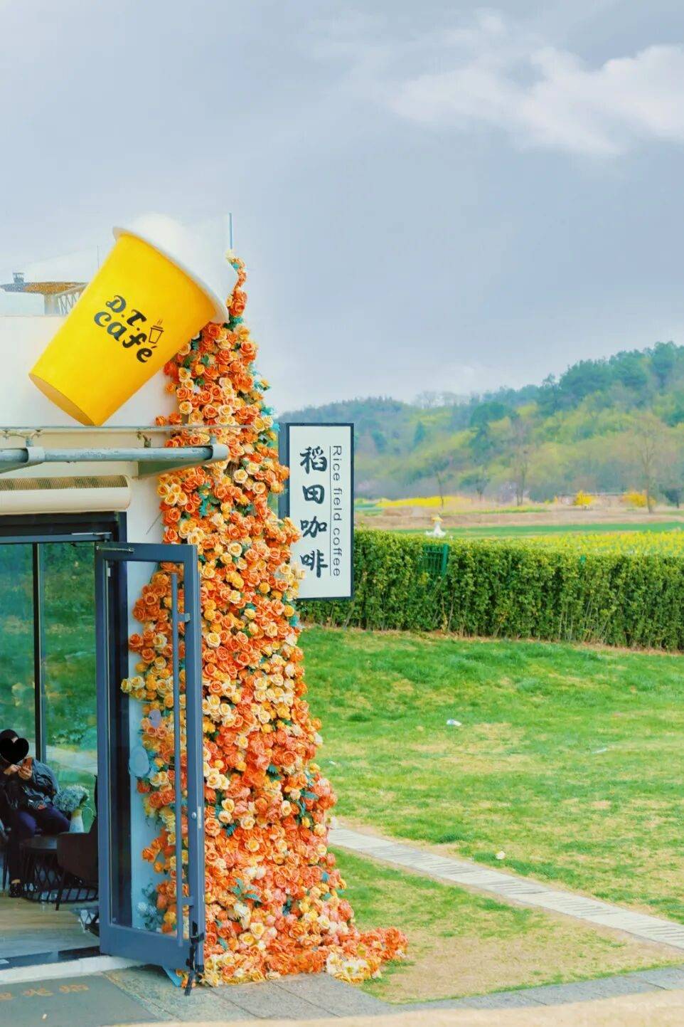 捧着一杯温暖的稻田咖啡,